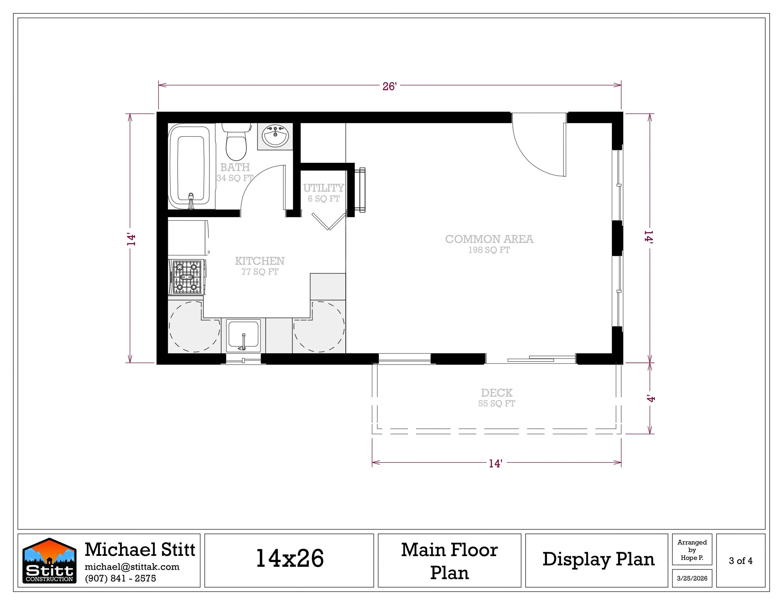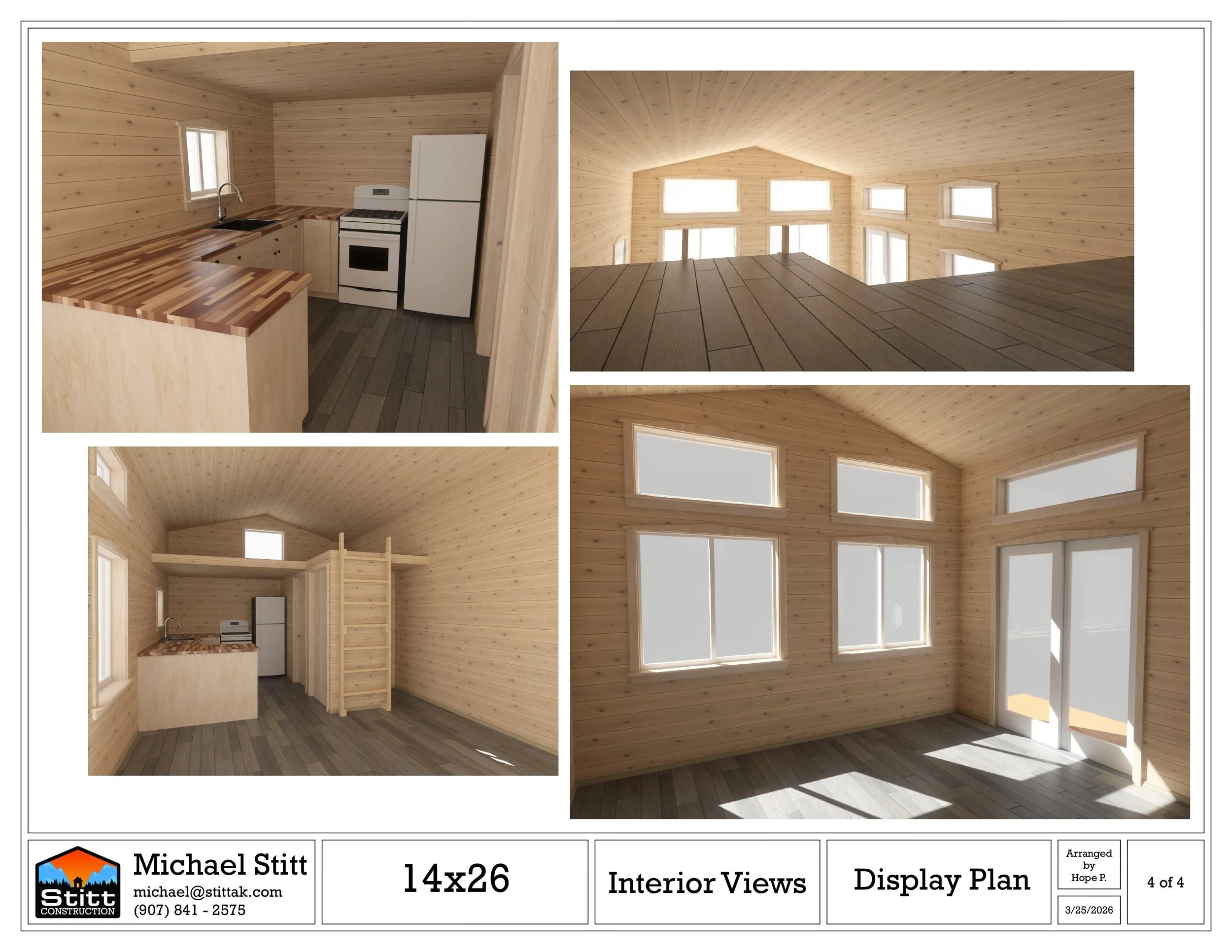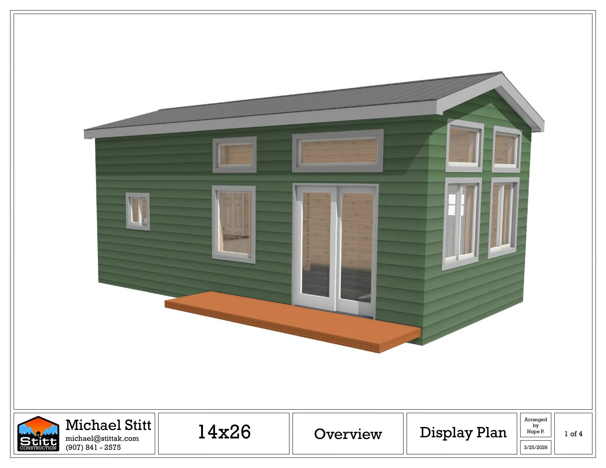 Studio- style home with 315 square feet of living space with full kitchen and bath, plus 108 square foot loft and 55 square foot deck.